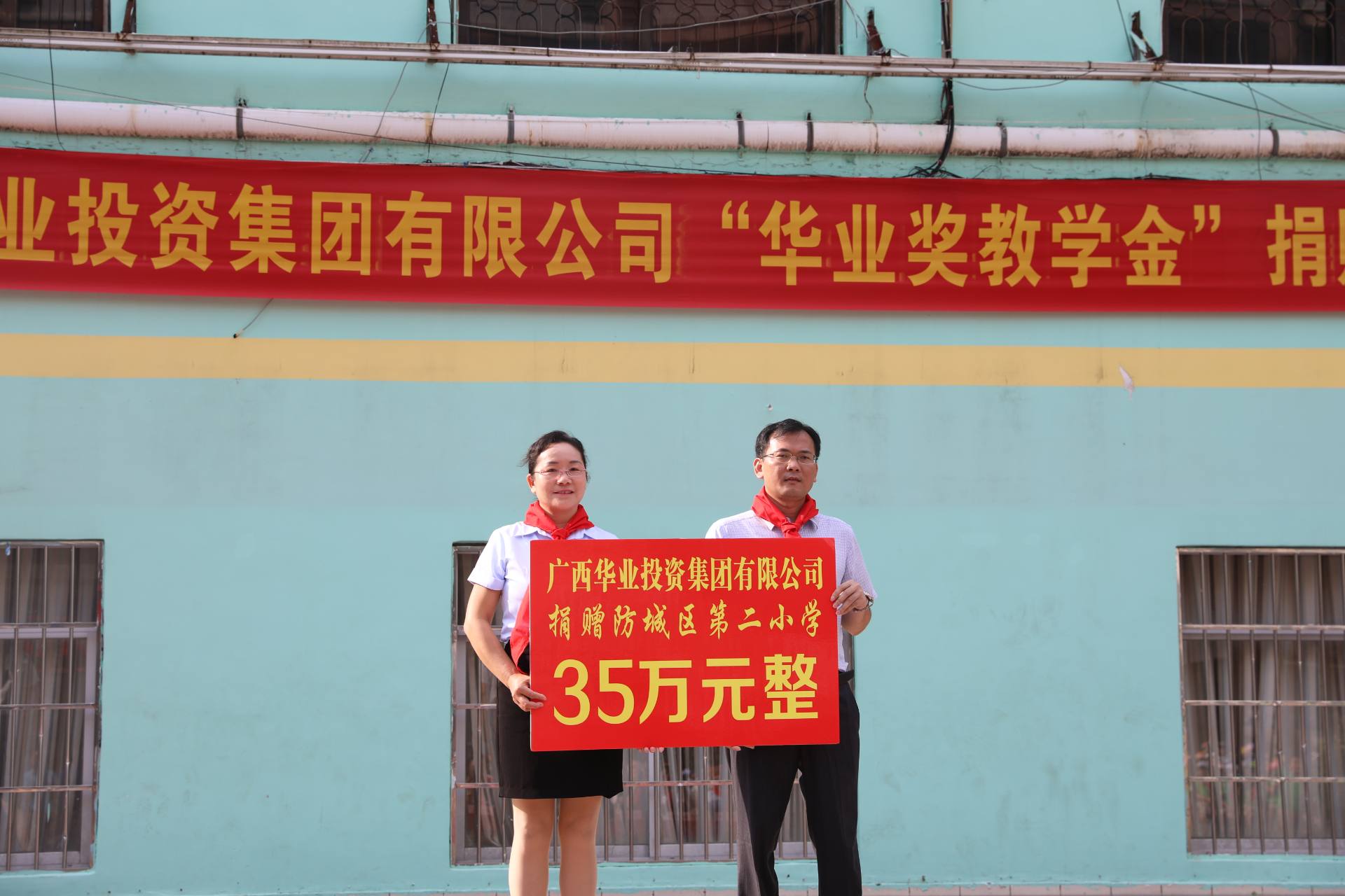 廖人兴副总裁代表环球体育app官网下载集团向防城区第二小学捐赠奖教学金35万元