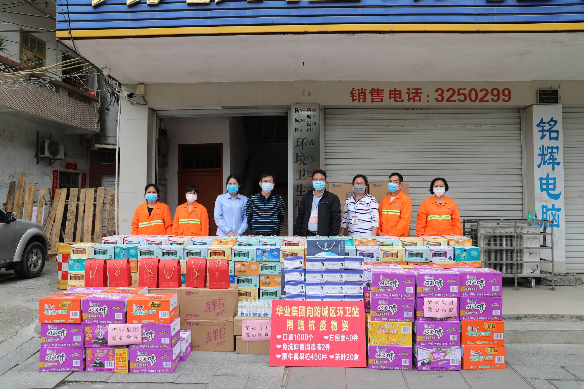 廖人兴副总裁、钟丽霞主席代表环球体育app官网下载集团向防城区环卫站捐赠防疫物资