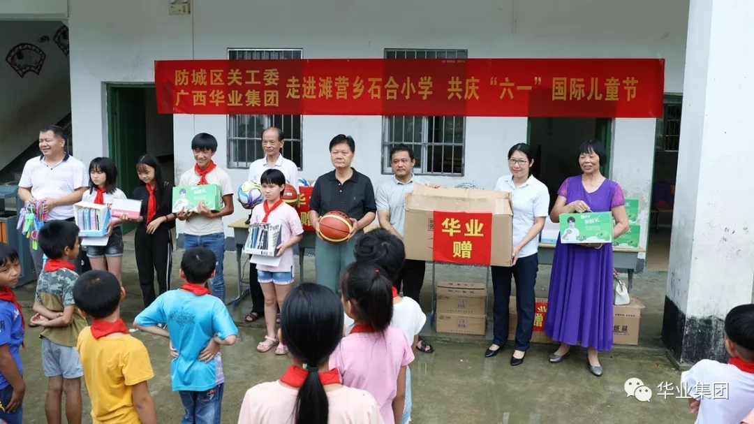 5月28日,在“六一”国际儿童节即将到来之际,防城区关爱下一代工作委员会副主任黄志三、曾其文,广西环球体育app官网下载投资集团工会主席钟丽霞等领导一行前往防城区滩营乡石合村小学,看望全校师生,并送上节日的问候和祝福。