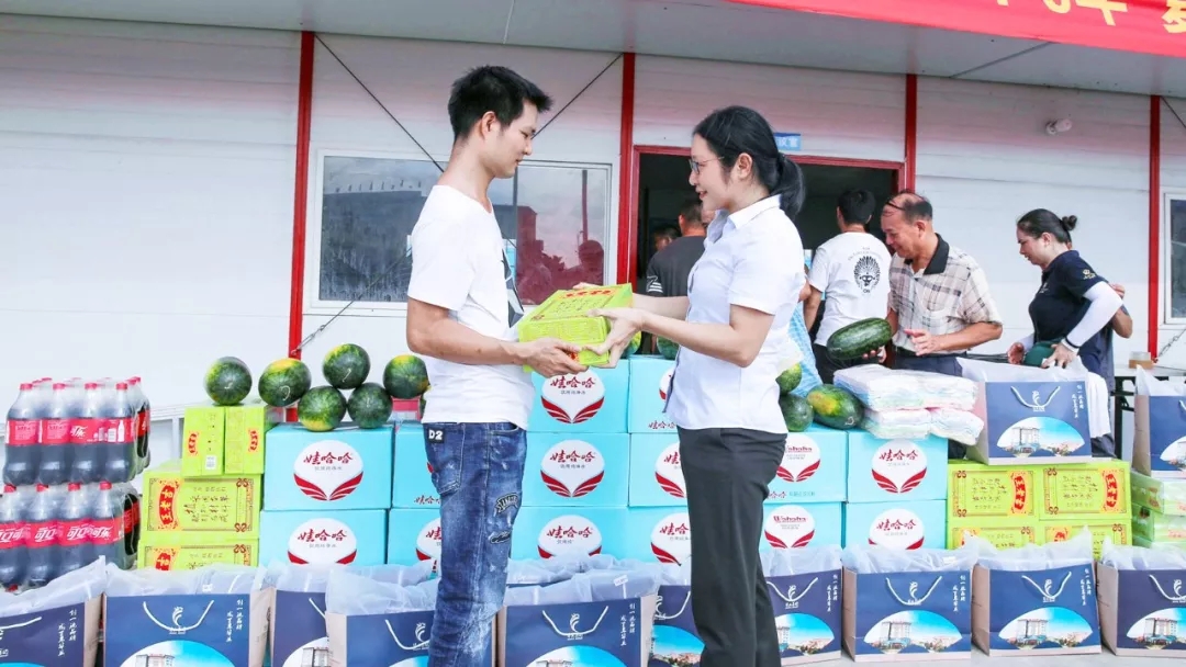 炎炎夏日,酷暑难当。为了确保施工项目工地员工清凉工作、安全度夏,创造一个清凉愉悦的工作环境,7月18日当天,集团工会主席钟丽霞代表公司为防城港市保税物流中心(B型)项目部的员工送去一批清凉饮品。一片冰镇的西瓜、一瓶清凉的饮料,把“凉爽”送到了每位一线员工的“心”上。切实把关心员工生活、关注员工健康工作落实到实处,为大家安全度夏提供有力的后勤保障。