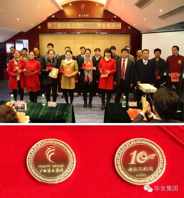 公司领导为十年员工颁发荣誉证书及纪念金币