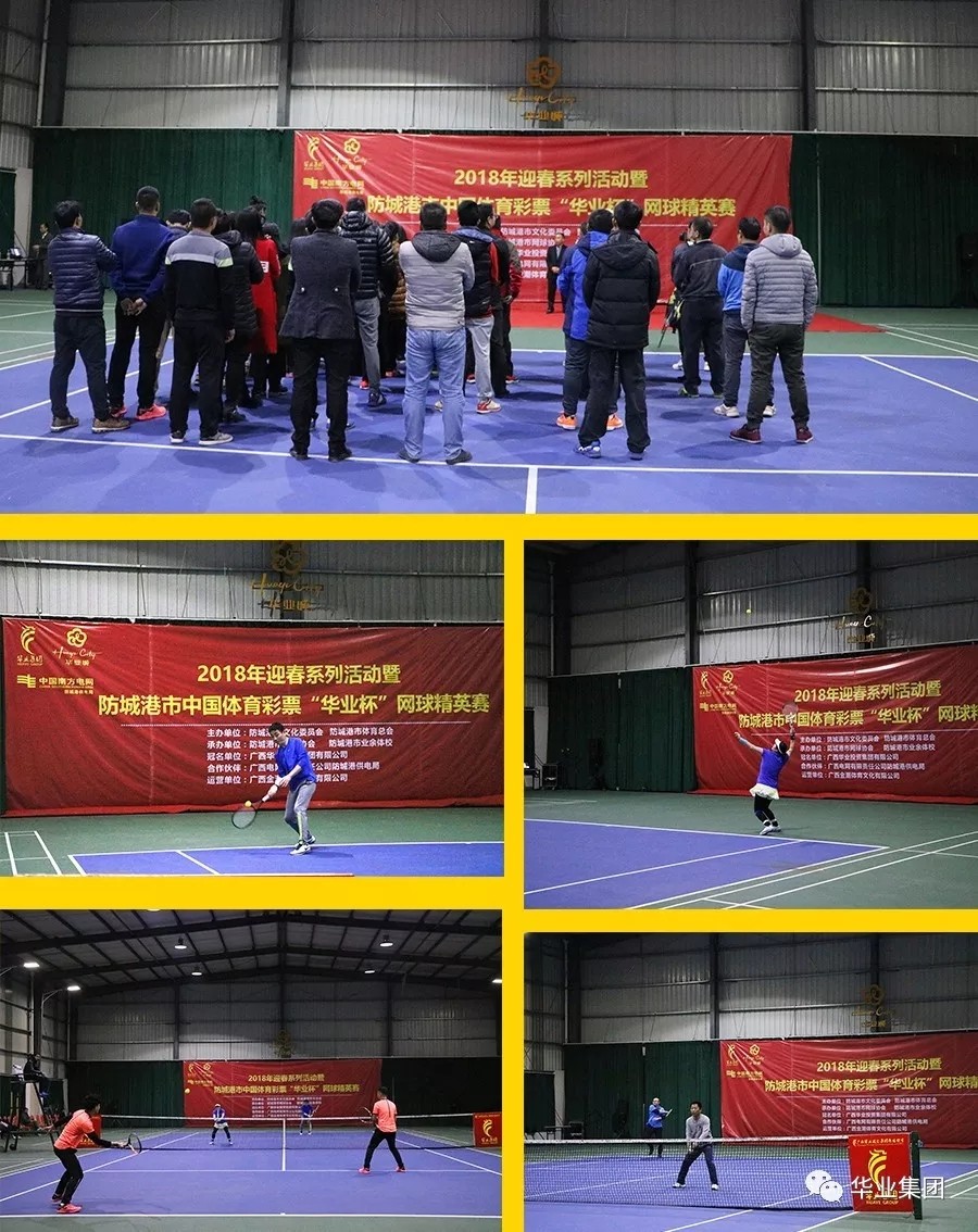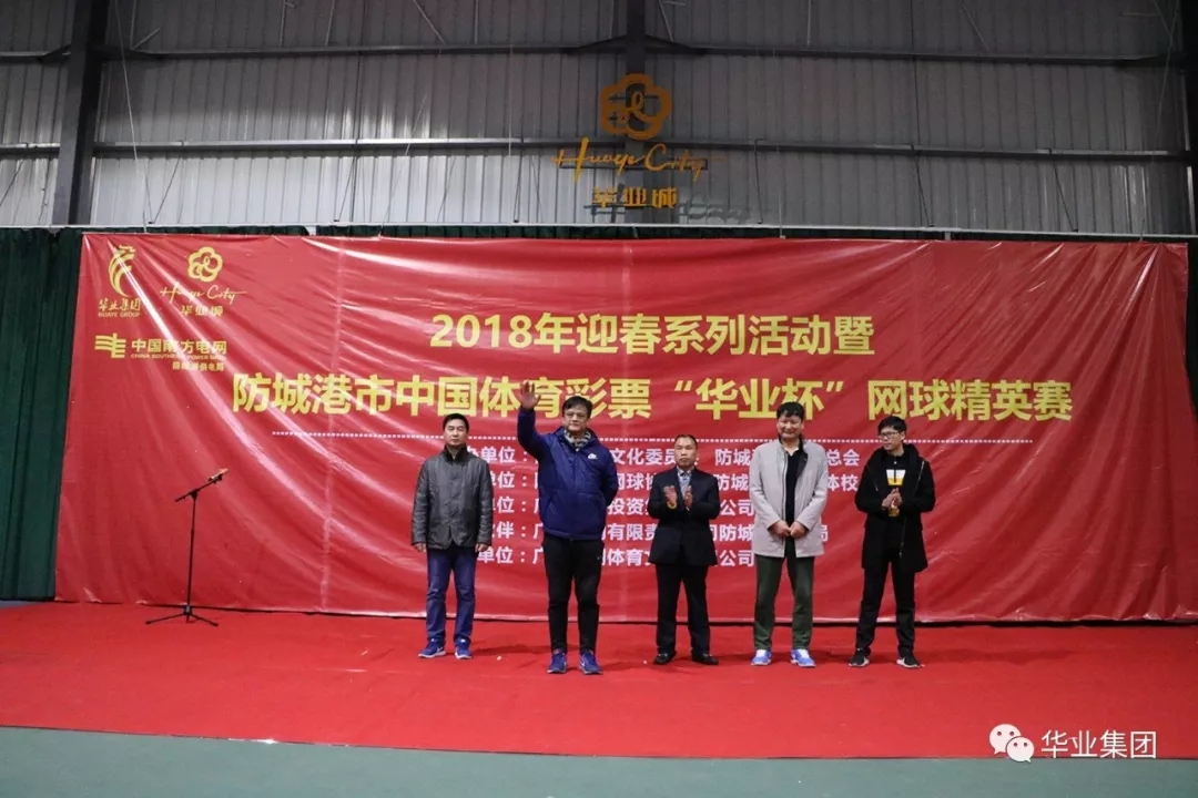 2018年2月2日,由环球体育app官网下载集团冠名的“防城港市中国体育彩票环球体育app官网下载杯网球精英赛”在环球体育app官网下载城全民健身活动中心拉开序幕,防城港市市委常委、常务副市长唐轶昂,副市长、公安局局长王琛,市住建委主任张常路,市文化委员会副主任陈文智,广西环球体育app官网下载投资集团总裁龙其伟,市网球协会会长莫自锋出席开幕式。