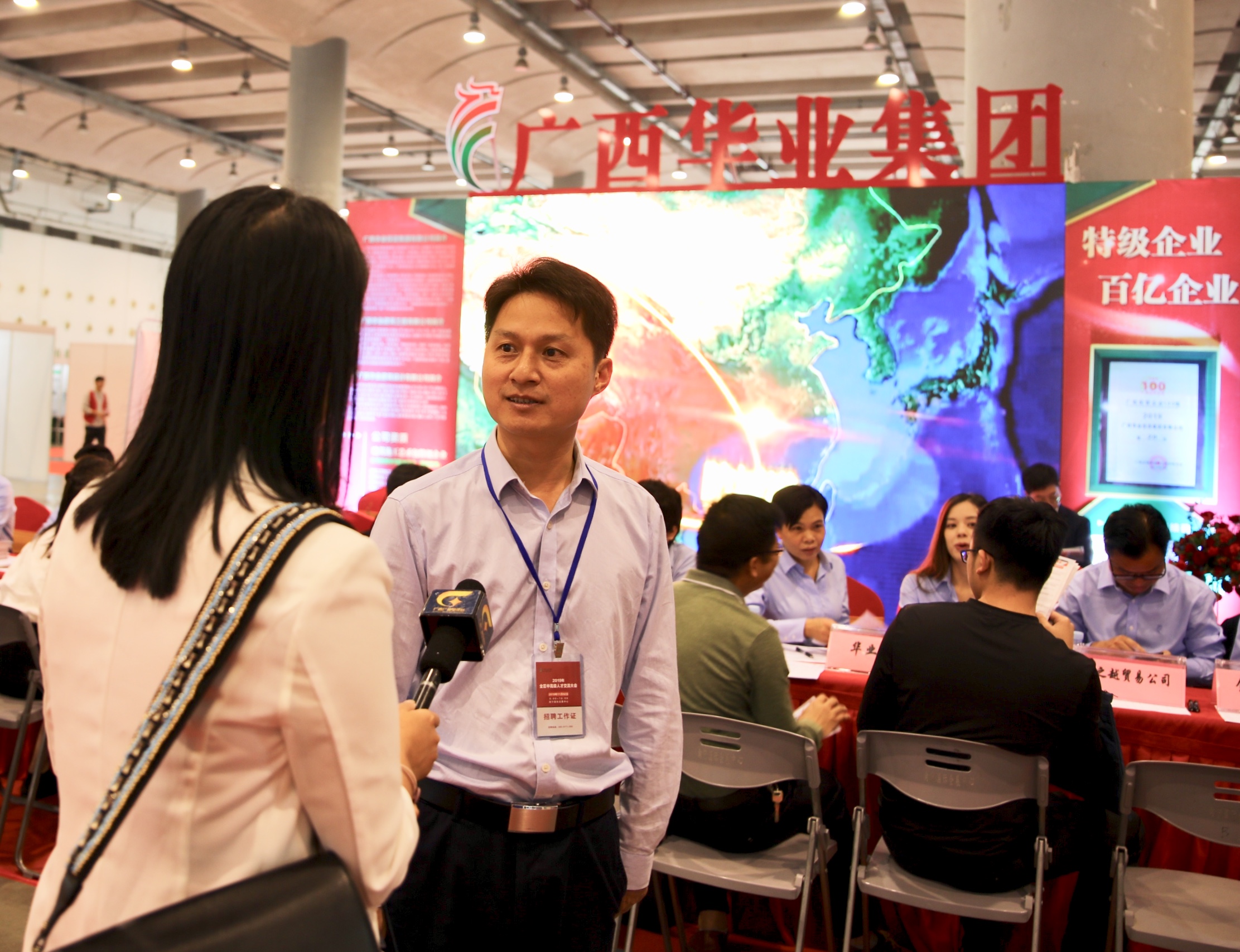 我们租用了入口处最好的展位,设置了展会上最大的LED屏幕,派出了人数最多的面试官,只为招到最好的人才,可谓求贤若渴。由于我们本次招聘的岗位众多、待遇优厚 ,应聘者络绎不绝,引起了广西电视台等官方媒体的关注,到现场采访。