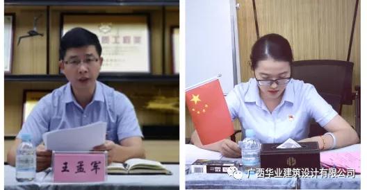 (集团党支部副书记王孟军(左)、党员代表徐柳(右)宣读)