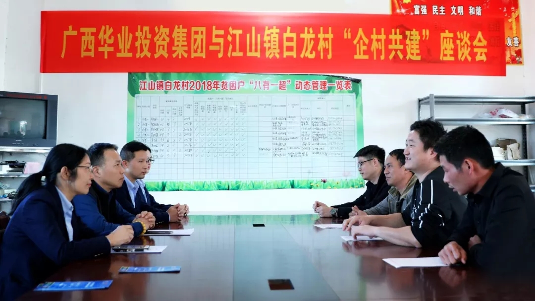 环球体育app官网下载集团总裁龙其伟和白龙村驻村第一书记黄景灿、党支部书记江朝锋及部分村委成员,就如何改变防城区江山镇白龙村贫困户现状,加快脱贫致富步伐,实现白龙村全体村民共同富裕展开了座谈交流,龙其伟总裁提出:扶贫不能仅靠捐钱捐物,更重要的是要带动贫困户从思想上、产业开发上、就业出路上全方位开展扶贫工作,增强贫困户自力更生谋发展的能力,从根源上摘掉贫困帽子,共同推动实现全面建筑小康社会的目标。