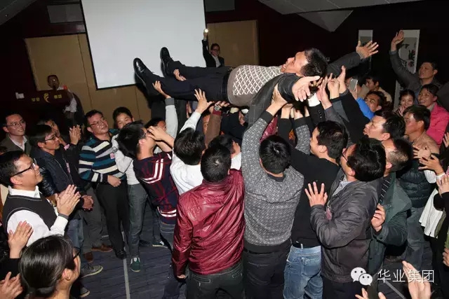 员工们以托举的方式表达对龙总裁的感激之情